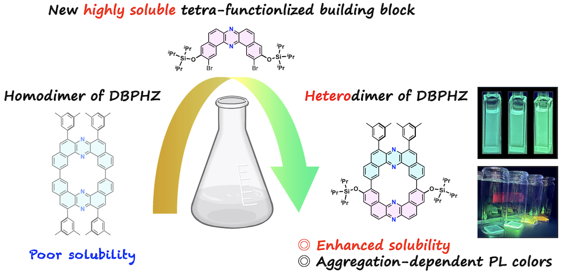 “Highly soluble cyclic dibenzophenazine heterodimer enabled by a tetra-functionalized building block"
